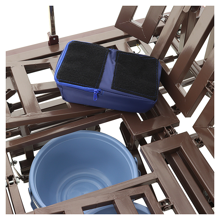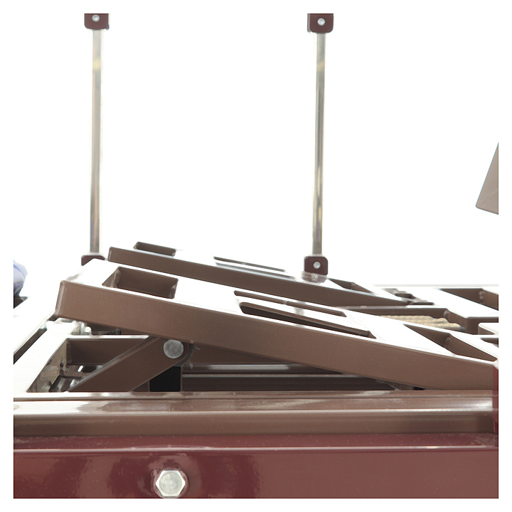 2 складных боковых ограждения, с фиксацией в верхнем положении в пазах опорных кронштейнов