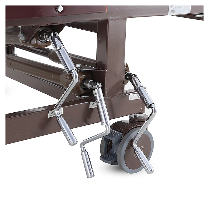 Икроножно-опорная секция в положении "Кардиокресло" опирается на пол пластиковыми роликами