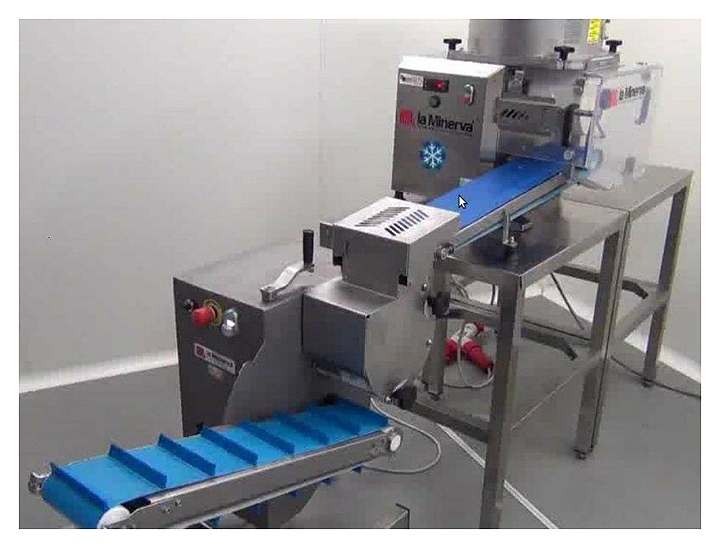 Котлетный автомат Minerva MBF 220 B используется на предприятиях общественного питания и торговли для изменения формы порций на круглую (фрикадельки). Модель оснащена разгрузочной конвейерной лентой с регулировкой высоты, роликовыми и опорными валиками (в форме полумесяца), бесконтактными магнитными микро выключателями, легко снимающимися загрузочным бункером и скребками. Части машины выполнены из анодированного алюминия и нержавеющей стали AISI 304. Аппарат используется с котлетным автоматом, который производит порции цилиндрической формы. Особенности: