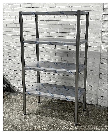 Кухонный стеллаж Restoinox СТП-17/6 предназначен для хранения посуды, инвентаря и продуктов, не требующих специального температурного режима, на предприятиях общественного питания и торговли. Модель оснащена 4 регулируемыми по высоте сплошными полками и ребрами жесткости. Сварной каркас выполнен из трубы 40х40 мм нержавеющей стали AISI 430, ребра жесткости и полки - из нержавеющей стали AISI 430. Дополнительные характеристики: