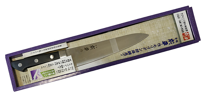 Нож для шефа Fuji Cutlery FC-43 предназначен для нарезки овощей, корнеплодов, полуфабрикатов, разделки мяса, рыбы и птицы в ресторанах, кафе. Лезвие выполнено из высококачественной стали, устойчивой к коррозии, рукоятка -из ABS-пластика Особенности: