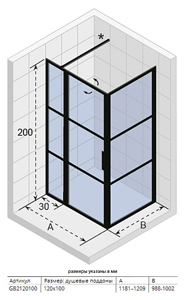 Душевой уголок RIHO GRID GB203 120x100x200 см, L/R