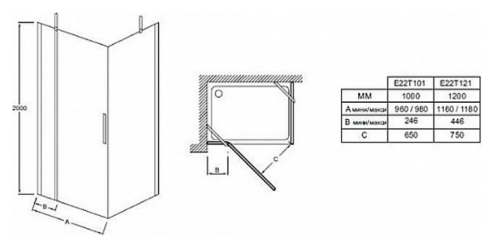 Дверь душевая Jacob Delafon E22T121-GA CONTRA 120х200 см, распашная, угловая