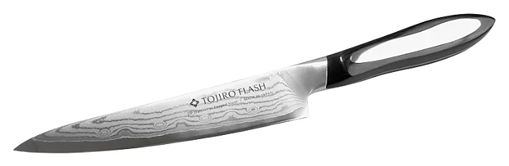Универсальный нож Tojiro FF-PA130 предназначен для очистки и нарезания овощей, корнеплодов, шинкования продуктов в ресторанах, кафе. Лезвие выполнено из высококачественной нержавеющей тридцатисемислойной стали, устойчивой к коррозии. Рукоятка выполнена из нескольких слоёв, покрыта слоистым рисунком Micarta. Особенности: