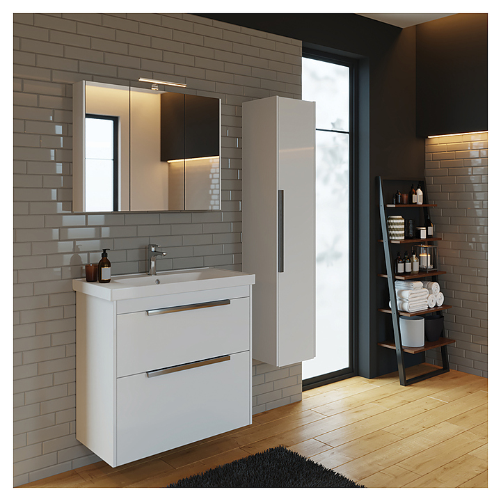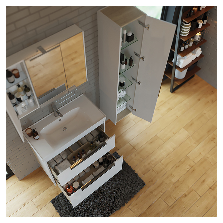 Пенал Dreja Prime 99.9303 в современном стиле дополнит интерьер любой ванной комнаты. Отличительной особенностью данной мебели является возможность как напольной, так и подвесной установки. Корпус и фасады выполнены из высококачественной окрашенной МДФ, которая обеспечивает изделию привлекательный внешний вид, а также износостойкость и долговечность. Ножки и набор крепежей для монтажа на стену в комплект поставки не входят и приобретаются отдельно. Комплектация: