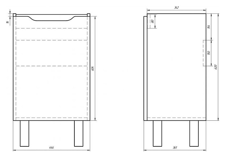 Тумба Dreja Mini 50 99.1201 в современном стиле идеально подходит для маленьких пространств. Строгий минимализм, лаконичный дизайн, глянцевая поверхность фасада - все это выделяет коллекцию среди остальных. Отличительной особенностью данной мебели является возможность как напольной, так и подвесной установки. Корпус выполнен из ЛДСП и покрыт глянцевой эмалью, которая характеризуется стойкостью к небольшим механическим повреждениям и простотой в уходе. Фасады изготовлены из высококачественной окрашенной МДФ, которая обеспечивает изделию привлекательный внешний вид, а также износостойкость и долговечность. Тумба используется вместе с раковиной Mini 50 195032. Ножки и набор крепежей для монтажа на стену в комплект поставки не входят и приобретаются отдельно. Особенности: