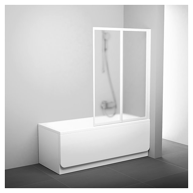 Шторка для ванны Ravak VS2 105х140 см, складная, Rain, профиль белый