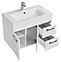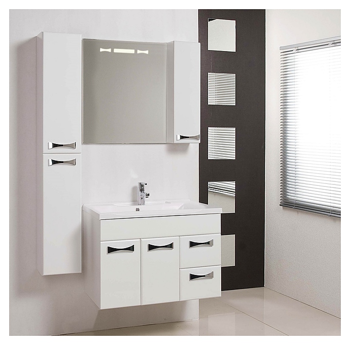 Тумба AQUATON Диор 80 1A167801DR010 выполнена в современном стиле. Благодаря подвесной конструкции изделие не занимает много места и обеспечивает легкую уборку в ванной комнате. Модель оснащена распашными фасад-створками, за которыми находится регулируемая по высоте полка и двумя вместительными выдвижными ящиками в правой части тумбы. Корпус изделия выполнен из влагостойкой ЛДСП, а фасад из высококачественной МДФ и окрашены белоснежной глянцевой полиэфирной краской ультрафиолетового отверждения, которая обеспечивает изделию привлекательный внешний вид, а также износостойкость и долговечность. Тумба используется вместе с раковиной Айрис 80 1A722931AG010. Комплектация: