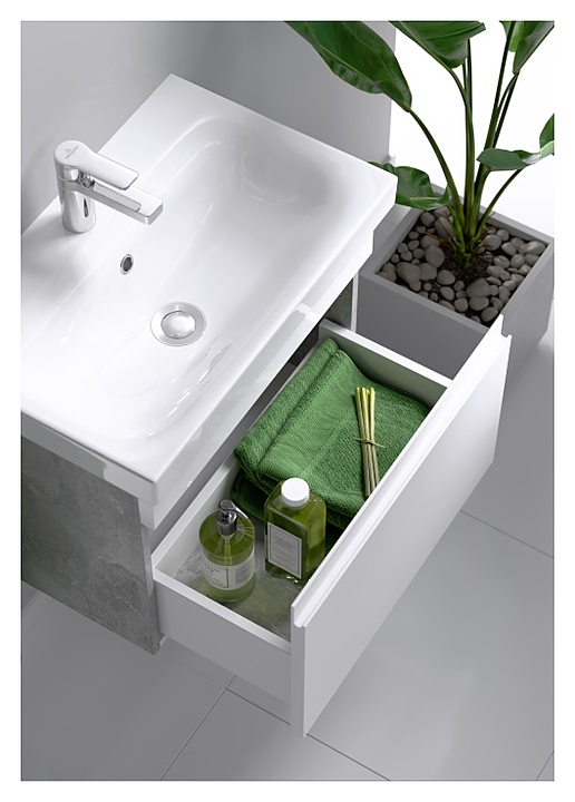 Тумба Aqwella Smart SRT0106BS подходит к большинству интерьеров ванных комнат. Подвесная конструкция и отсутствие ножек создают иллюзию парения в воздухе и упрощают уборку. Ящик тумбы оснащен скрытыми направляющими с системой мягкого закрывания. Корпус мебели выполнен из ЛДСП повышенной плотности. Фасады производятся из МДФ и окрашены в белоснежный цвет с высокой степенью глянца полиэфирной краской, которая обеспечивает изделию привлекательный внешний вид, а также износостойкость и долговечность. Тумба используется вместе с раковиной Moduo Slim 60. Для установки понадобится набор крепежей для монтажа на стену. Дополнительные характеристики: