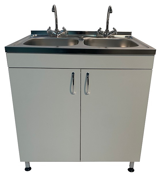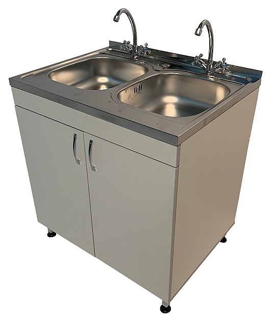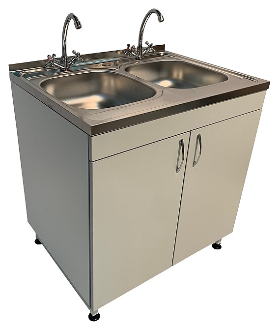 Лабораторная мойка Мед Мебель МЛ 13.005 предназначен для установки в лабораториях и других учреждениях медицины. Модель оснащена тумбой под мойкой с 2 распашными дверцами, и регулируемыми по высоте ножками за счет винтовых опор-регуляторов. 2 чаши со смесителем устанавливаются сверху. Каркас обеспечивает легкость и прочность конструкции. Обшивка выполнена из ЛДСП, каркас - из стального профиля, покрытого порошковой краской, чаша - из листовой нержавеющей стали. В комплект поставки входит один смеситель, подводки для горячей и холодной воды, сливной сифон. Особенности: