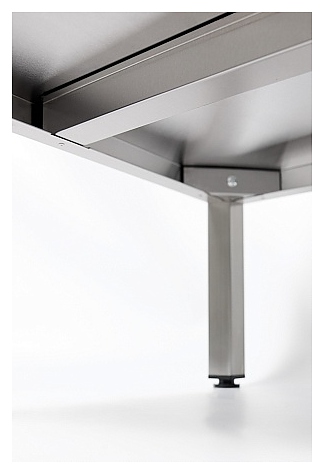Производственный островной стол Restoinox СП-4/8-П серии 800 предназначен для обработки продуктов питания, раскатки теста и хранения кухонного инвентаря, также для размещения малогабаритного оборудования на предприятиях общественного питания и торговли. Модель оснащена сплошной полкой, усиленной ребром жесткости. Ножки выполнены из квадратной трубы 40х40 мм из нержавеющей стали Aisi 430, рабочая поверхность и полка - из нержавеющей стали Aisi 430, столешница усилена листом ЛДСП. Особенности: