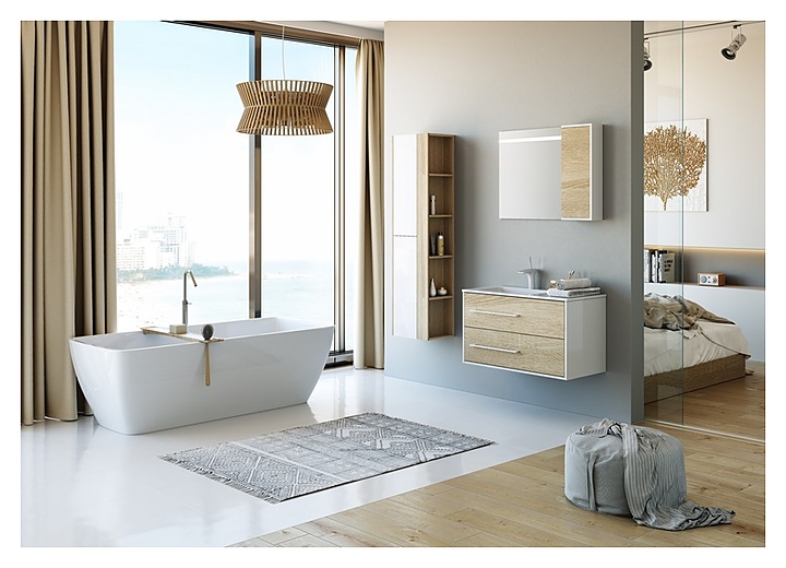 Шкаф Aqwella Miami Mai.04.25 благодаря сочетанию простоты форм и теплого цвета дерева отлично дополнит интерьер любой ванной комнаты. Подвесная конструкция позволяет экономить пространство в небольшой ванной комнате, а также облегчает уборку. Модель оснащена двумя дверьми с системой открывания «push-to-open». Фасады и корпус выполнены из ЛДСП в комбинации цветов дуб сонома и белый глянец, что обеспечивает изделию привлекательный внешний вид, а также износостойкость и долговечность. Для установки понадобится набор крепежей для монтажа на стену. Особенности: