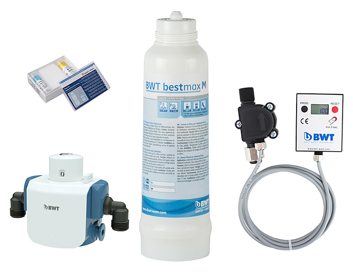 Стартовый комплект BWT Bestmax M используется на предприятиях общественного питания и торговли для фильтрации воды, используемой в бойлерах, кофемашинах, пароконвектоматах, посудомоечных машинах, льдогенераторах и другом борудовании HoReCa, а также защиты его от известковых отложений. Многоступенчатая очистка обеспечивает необходимое качество воды для приготовления блюд и напитков и удаление всех примесей. Перед использованием фильтра необходим пролив несколькими литрами воды в дренаж (количество литров согласно инструкции). Комплектация: