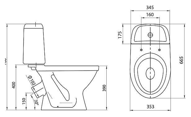 Унитаз-компакт с бачком Santeri Прайм 1.P205.4.S00.00B.F