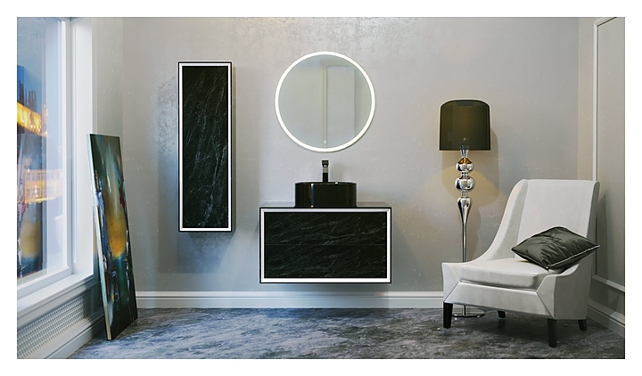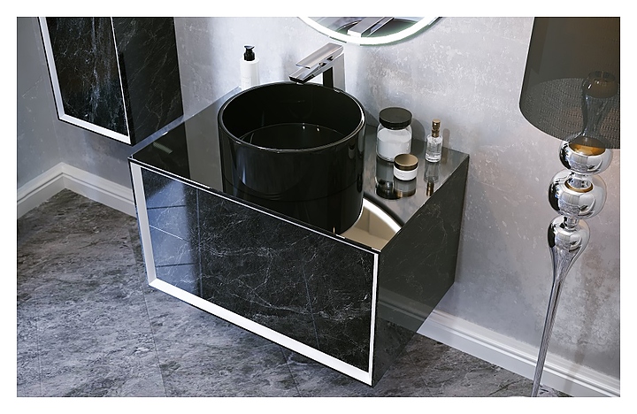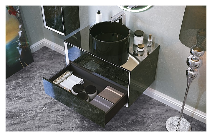 Тумба Jorno Charm 85 Cha.01.85/P/Bm представлена в современном стиле. Предусматривает удобную и вместительную систему хранения, состоящую из двух ящиков. Подвесная конструкция и отсутствие ножек создают иллюзию парения в воздухе и упрощают уборку. Столешница у тумбы изготавливается из стекла Lacobel черного цвета. Механизм открывания ящиков тумбы push-to-open. Корпус и фасад выполнены из МДФ, покрытого пленкой ПВХ с имитацией мрамора высокого глянца. Тумбу можно комплектовать с любой накладной раковиной, что очень удобно. Изделие поставляется с комплектом креплений. Особенности: