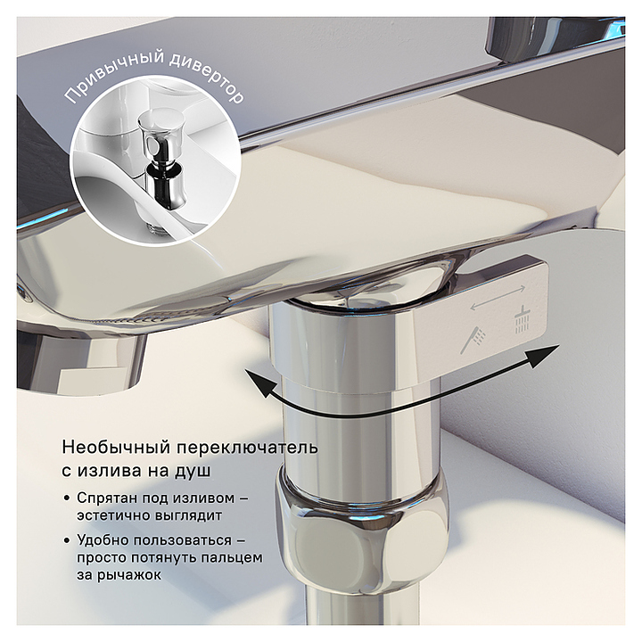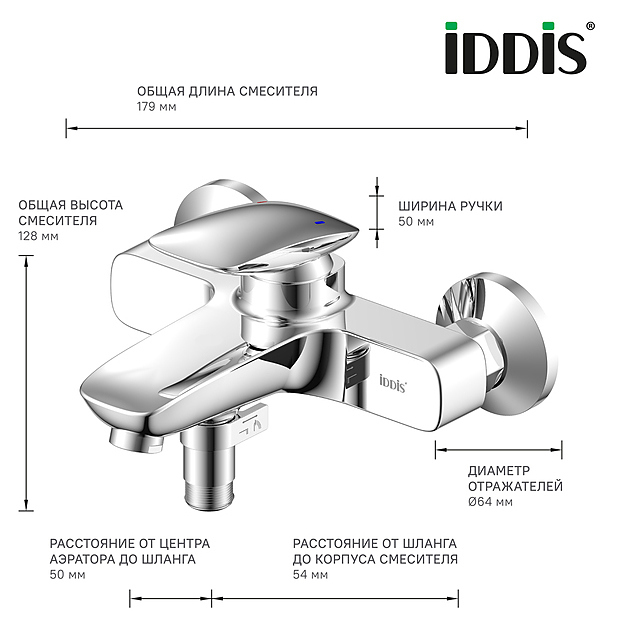 Смеситель для ванны и душа настенный IDDIS STONE STOSB00i02WA выполнен в стиле модерн и используется для подачи и смешивания горячей и холодной воды. Модель оснащена рычагом, характеризующимся плавной работой и керамическим поворотным дивертором, расположенным под изливом в месте крепления шланга. Ручное переключение дивертора ванна/душ позволяет с комфортом пользоваться душем даже при низком давлении воды в трубах. Аэратор Neoperl обеспечивает ровный и мягкий поток воды без брызг и легко чистится от известкового налета. Изделие выполнено из высококачественной латуни, которая отличается прочностью, долговечностью и устойчивостью к перепадам температур, с устойчивым к износу и эрозии покрытием, благодаря которому не теряет презентабельный вид. Особенности: