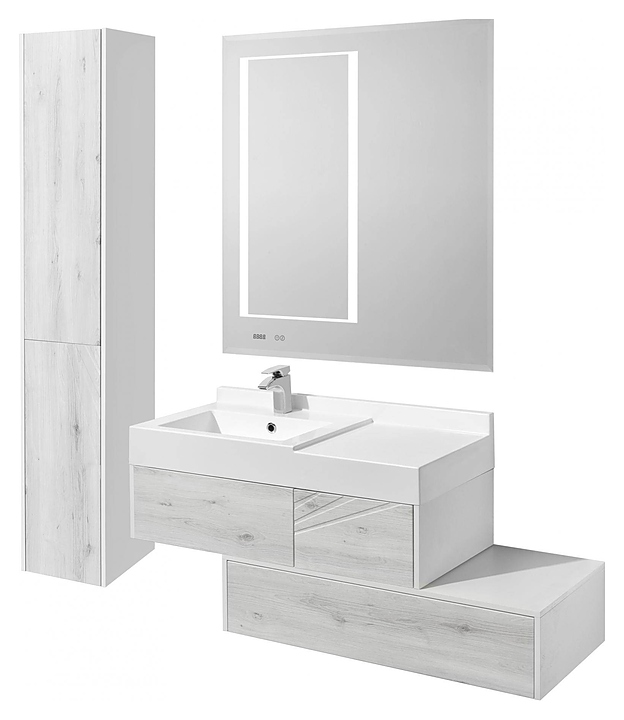 Комод AQUATON Сакура 1A234803SKW80 100 выполнен в современном стиле. Благодаря подвесной конструкции комод не занимает много места в помещении, а свободное пространство снизу делает уборку в ванной комнате гораздо легче. Модель оснащена одним выдвижным ящиком с системой push-to-open, в котором находится антискользящий коврик, препятствующий перемещению содержимого. Корпус изделия выполнен из влагостойкой ЛДСП, окрашенной в белоснежный цвет с высокой степенью глянца полиэфирной краской ультрафиолетового отверждения, а фасады из высококачественной МДФ в пленке в древесной текстуре ольха наварра, что обеспечивает изделию привлекательный внешний вид, а также износостойкость и долговечность. Комплектация: