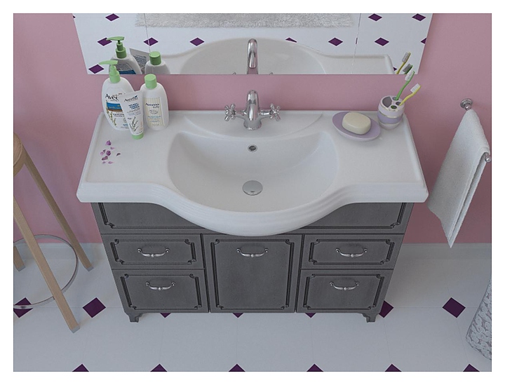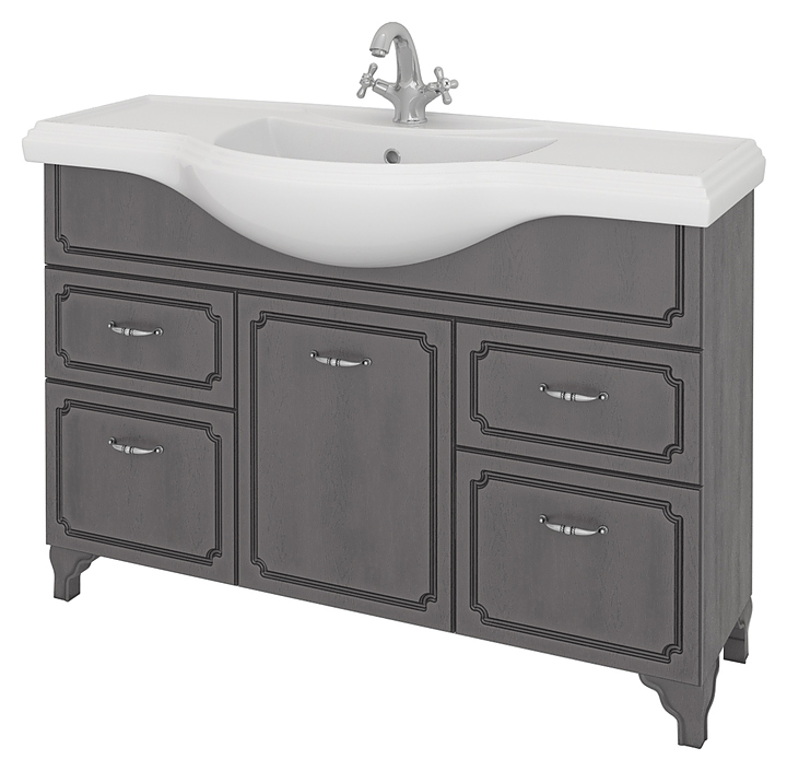 Тумба КАКСА-А Патина Патина 004489 выпонен в ретро стиле и отлично дополнит интерьер любой ванной комнаты. Изделие устанавливается на ножки, что позволяет защитить конструкцию от воздействия влаги в случае намокания пола, а также облегчает уборку. Модель оснащена тремя дверками, за которыми находятся вместительные полки для необходимых в ванной комнате принадлежностей и двумя выдвижными ящиками для хранения мелочей. Корпус изготовлен из ЛДСП, покрытой ПФХ пленкой, поверх которой наносится слой патины, затем слой защитного лака. Фасад выполнен из МДФ, покрытой антибактериальной пленкой ПВХ с имитацией структуры дерева, которая отличается долговечностью и экологичностью, а также предохраняет от загрязнения и защищает от влаги. Тумба используется вместе с раковиной Классик 1200 004000. Особенности: