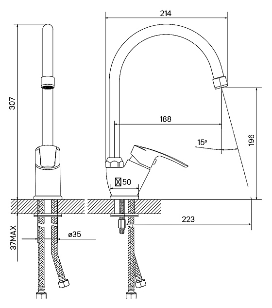 Смеситель для кухни IDDIS RAY RAYSB00i05 выполнен в стиле модерн и используется для подачи и смешивания горячей и холодной воды. Модель устанавливается на кухонную мойку, оснащена эргономичным рычагом, характеризующимся плавной работой и поворотным изливом. Однозахватный тип управления позволяет очень быстро и плавно регулировать подачу воды одной рукой. Силиконовый аэратор Neoperl® легко очищается от ржавчины и известковых отложений. Изделие выполнено из высококачественной латуни, которая отличается прочностью, долговечностью и устойчивостью к перепадам температур, с устойчивым к износу и эрозии комбинированным покрытием, благодаря которому не теряет презентабельный вид. В комплект поставки входит гибкая подводка, крепеж. Особенности: