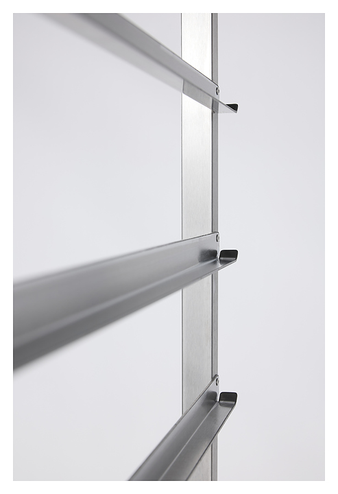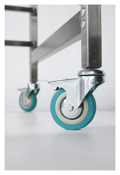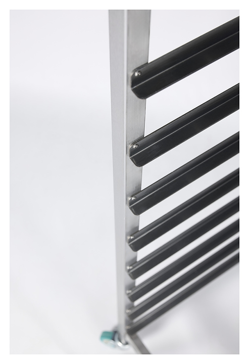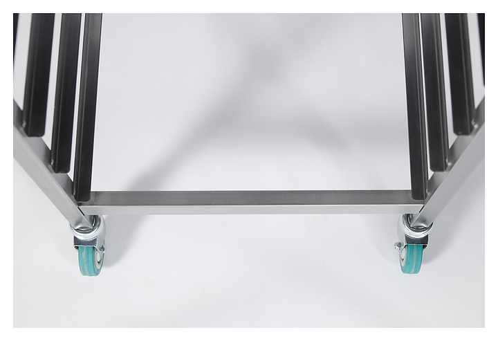 Тележка-шпилька Restoinox ТШРП-12 600х400 предназначена для хранения и транспортировки подносов и противней на предприятиях общественного питания и торговли. Модель оснащена 4 поворотными колесами, 2 из которых со стопорами. Разборный каркас выполнен из квадратной трубы 25х25 мм нержавеющей стали Aisi 430, направляющие - из нержавеющей стали Aisi 430. Особенности: