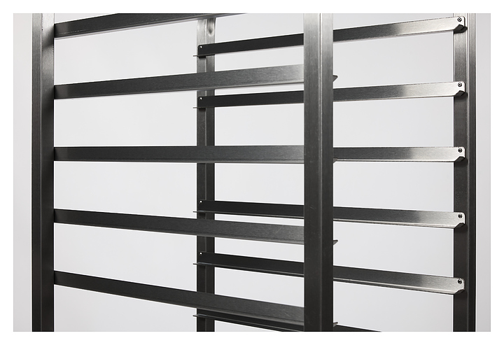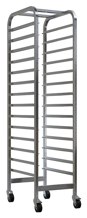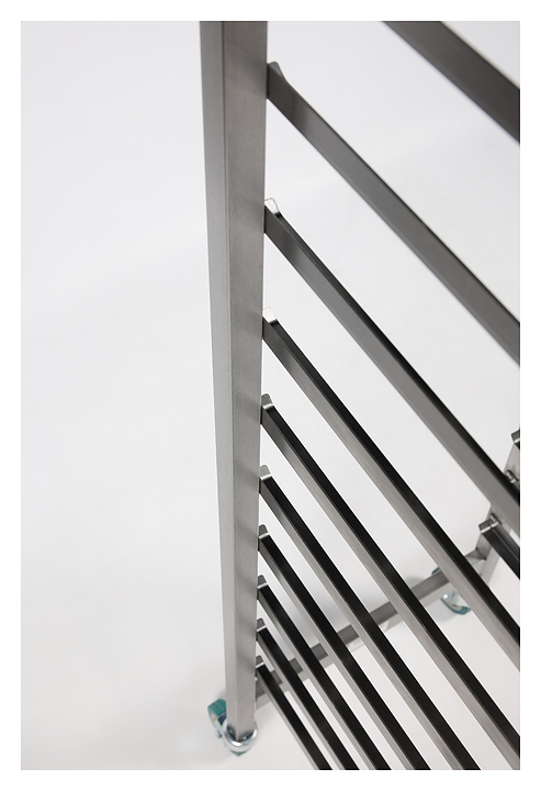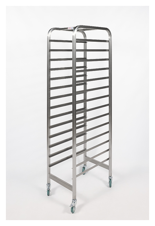 Тележка-шпилька Restoinox ТШCГ-14 GN 1/1 предназначена для хранения и транспортировки гастроемкостей на предприятиях общественного питания и торговли. Модель оснащена 4 поворотными колесами, 2 из которых со стопорами. Сварной каркас выполнен из квадратной трубы 25х25 мм нержавеющей стали Aisi 430, направляющие - из нержавеющей стали Aisi 430. Особенности: