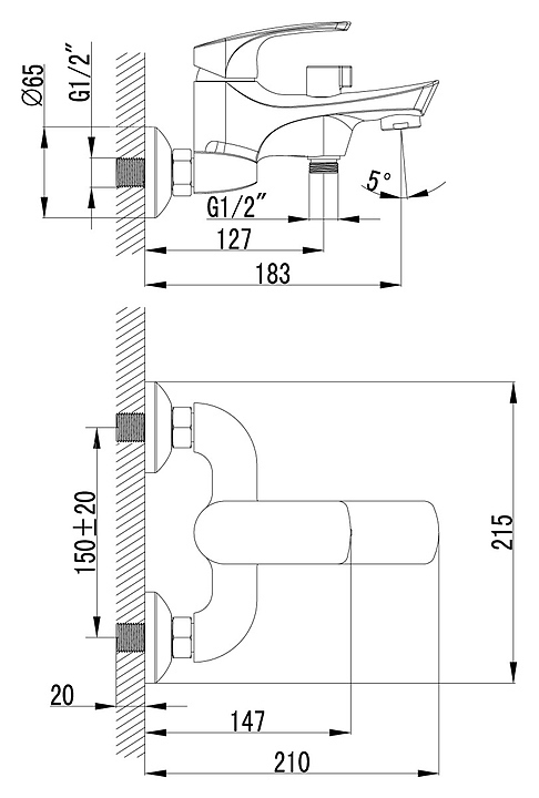 Смеситель для ванны и душа LEMARK plus Shape LM1712C с коротким фиксированным изливом, хром