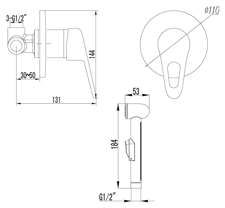 Смеситель для биде с гигиеническим душем LEMARK Luna LM4119C встраиваемый, хром