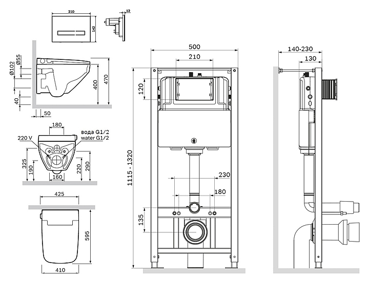 Унитаз подвесной с инсталляцией и сиденьем AM.PM Inspire 2.0 IS47051.50A1700