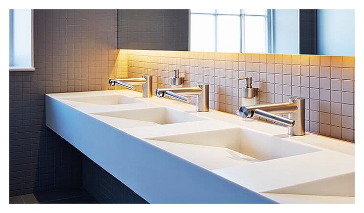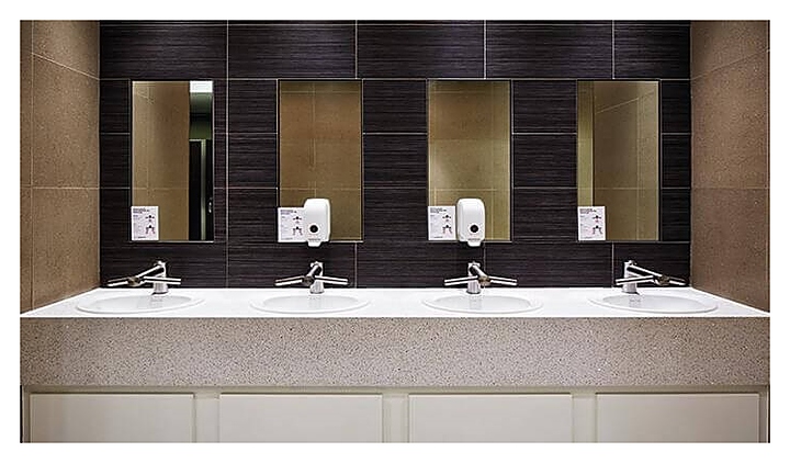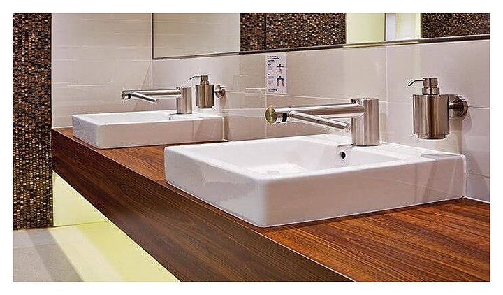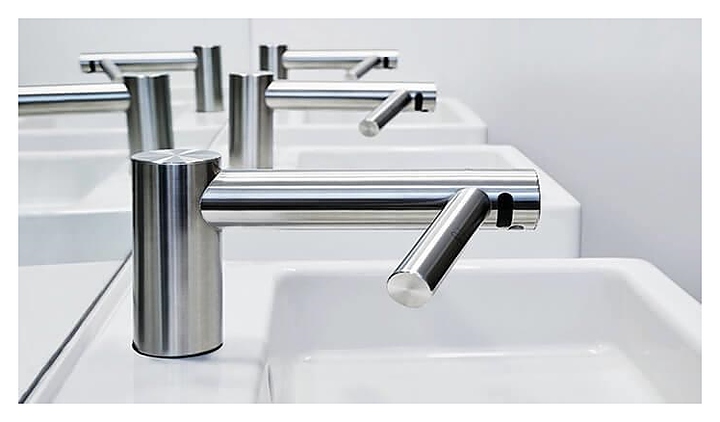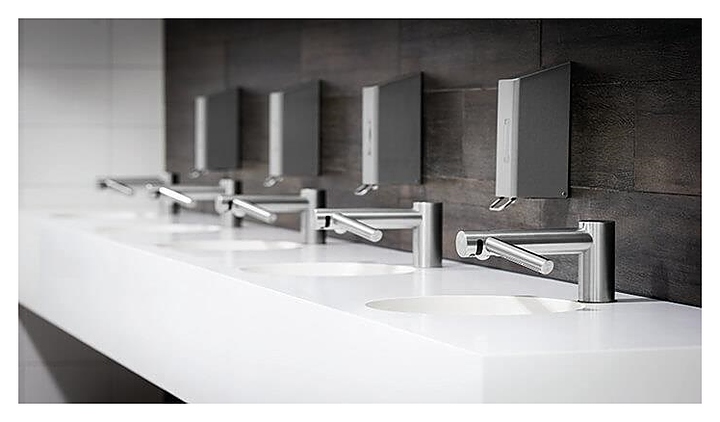 Смеситель-сушилка Dyson Airblade Wash + Dry используется в туалетных комнатах кафе, баров, ресторанов, торговых центров, офисов и других общественных мест для мытья, быстрой сушки и дезинфекции рук. Изделие совмещает в себе функции классического смесителя и сушилки для рук, тем самым позволяя сэкономить пространство туалетной комнаты и избежать случайного попадания воды на пол. Корпус выполнен из матовой нержавеющей стали, корпус двигателя - из ABS-пластика. Особенности: