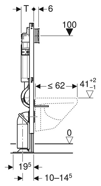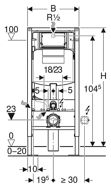 Система инсталляции с бачком Geberit Duofix 111.333.00.5 предназначена для монтажа подвесных унитазов с вылетом до 62 см. Модель представляет собой настенную опорную раму с бачком и регулируемыми по высоте ножками. Инсталляция подходит для гипсокартонных стен, для встраивания в пристенки по высоте рамы или по высоте помещения, для встраивания в фальшстены по высоте помещения, для встраивания в перегородку систем Geberit Duofix по высоте рамы или помещения, для одинарного, двойного смыва или смыва смыв-стоп. Рама подготовлена для крепления крепежных скоб для установки нестандартного санфаянса. Монтаж и сервисное обслуживание смывного бачка скрытого монтажа не требуют использования инструментов. Рама выполнена из стали с антикоррозиийным порошковым напылением. В комплект поставки входят подвод воды R 1/2", совместимый с MF, со встроенным угловым запорным вентилем и маховичком, защитная крышка для окна технического обслуживания, защитные заглушки, комплект для подключения унитаза, соединительное колено, переходная муфта, резьбовые шпильки и набор крепежей. Панель смыва не входит в комплект поставки и приобретается отдельно. Особенности: