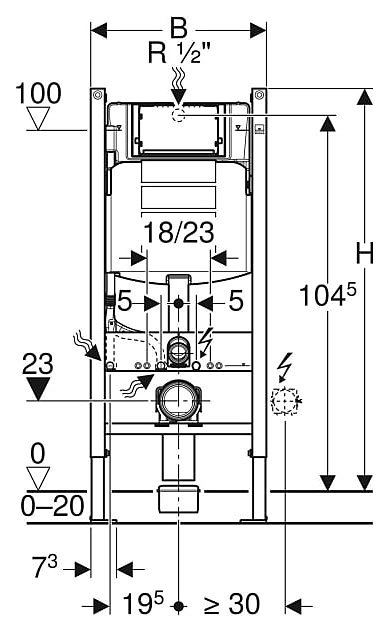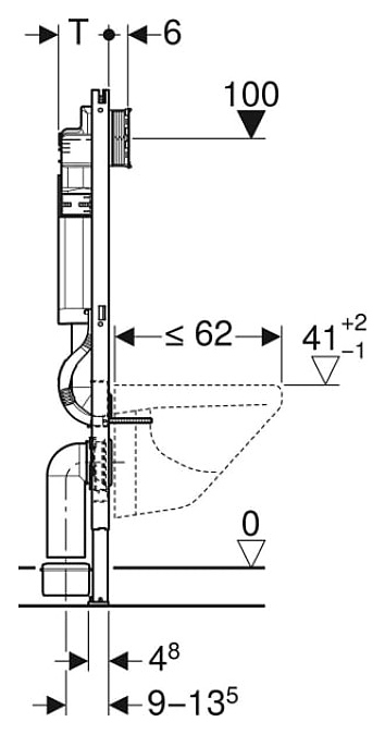 Система инсталляции с бачком Geberit Duofix 111.362.00.5 предназначена для монтажа подвесных унитазов с вылетом до 62 см. Модель представляет собой настенную опорную раму с бачком и регулируемыми по высоте ножками. Инсталляция подходит для гипсокартонных стен, для встраивания в пристенки по высоте рамы или по высоте помещения, для встраивания в фальшстены по высоте помещения, для встраивания в перегородку систем Geberit Duofix по высоте рамы или помещения, для одинарного, двойного смыва или смыва смыв-стоп. Рама подготовлена для крепления крепежных скоб для установки нестандартного санфаянса. Монтаж и сервисное обслуживание смывного бачка скрытого монтажа не требуют использования инструментов. Рама выполнена из стали с антикоррозиийным порошковым напылением. В комплект поставки входят подвод воды R 1/2", совместимый с MF, со встроенным угловым запорным вентилем и маховичком, защитная крышка для окна технического обслуживания, защитные заглушки, комплект для подключения унитаза, соединительное колено, переходная муфта, резьбовые шпильки, звукоизолирующий комплект, анкер для крепления к стене, со свободной точкой крепления и набор крепежей. Панель смыва не входит в комплект поставки и приобретается отдельно. Особенности: