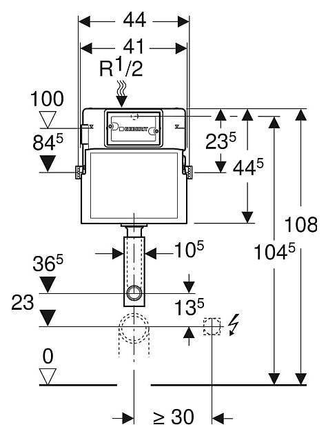 Бачок скрытого монтажа Geberit Delta 109.100.00.1 предназначен для установки с приставными и подвесными унитазами. Модель оснащена противокнденсатной оболочкой. Бачок подходит для облицованных стен, для встраивания в пристенки по высоте рамы или по высоте помещения, для встраивания в фальшстены по высоте помещения. Изделие выполнено из пластика. В комплект поставки входят угловой запорный вентиль R 1/2", совместим с MF, с кольцом-адаптером, защитная крышка для окна технического обслуживания, 2 держателя крепления рамки, колено смыва с изолирующими сегментами, защитная заглушка, 2 металлических крепежных планки с отверстиями, 2 крепежных уголка и наборе крепежей. Особенности: