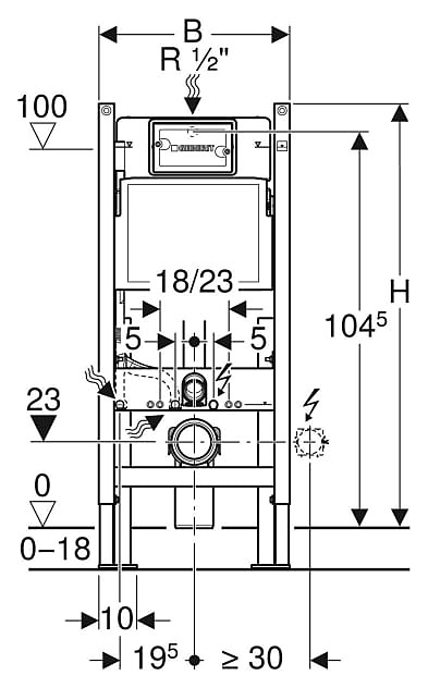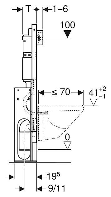 Система инсталляции с бачком Geberit Delta 457.570.00.1 предназначена для монтажа подвесных унитазов с вылетом до 70 см. Модель представляет собой настенную опорную раму с бачком и регулируемыми по высоте ножками. Инсталляция подходит для гипсокартонных стен, для отдельного монтажа на бетонном полу, для одинарного, двойного смыва или смыва смыв-стоп. Рама, соответствующая повышенным статическим требованиям, подготовлена для крепления крепежных скоб для установки нестандартного санфаянса. Рама выполнена из стали с антикоррозиийным порошковым напылением. В комплект поставки входят угловой запорный вентиль R 1/2", совместим с MF, с кольцом-адаптером, защитная крышка для окна технического обслуживания, 2 держателя крепления рамки, комплект для подключения унитаза, соединительное колено, резьбовые шпильки, защитные заглушки и набор крепежей. Панель смыва не входит в комплект поставки и приобретается отдельно. Особенности: