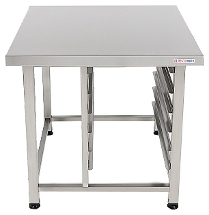 Подставка Restoinox ППКР-1-88/77 предназначена для размещения пароконвектоматов на предприятиях общественного питания и торговли. Модель оснащена регулируемыми по высоте опорами. Разборный каркас выполнен из трубы 40х40 мм нержавеющей стали Aisi 430, направляющие и столешница - из нержавеющей стали Aisi 430. Дополнительные характеристики: