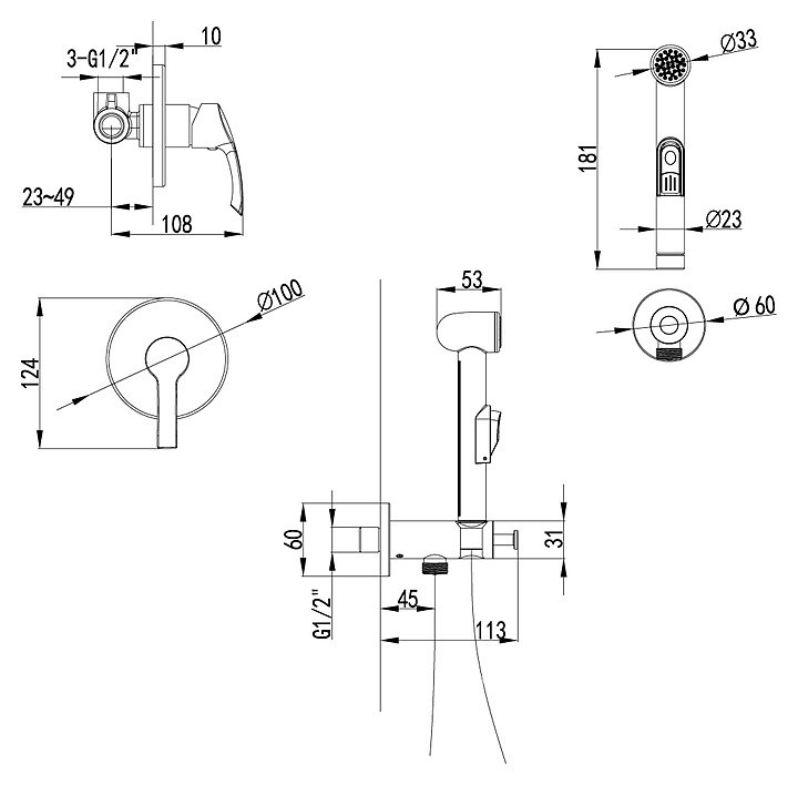 Смеситель для биде с гигиеническим душем LEMARK plus Strike LM1119C встраиваемый, хром
