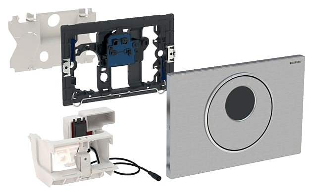 Система электронного управления смывом Geberit Sigma10 115.890.SN.5 предназначена для установки с инсталляциями для подвесных унитазов Geberit. Аксессуар прямоугольной формы с двойной клавишей, для бесшумного автоматического, бесконтактного или ручного смыва из смывного бачка скрытого монтажа. Питание системы происходит от сети, возможна эксплуатация при низком напряжении. У модели регулируются периодическая подача воды, предварительный смыв, среднее время распознавания. Модель выполнена из нержавеющей стали. В комплект поставки входят смывная клавиша, монтажная pама с ИК-датчиком, защитная пластина, кронштейн с сервомотором и подъемным механизмом, толкатель привода смыва и набор крепежей. Особенности: