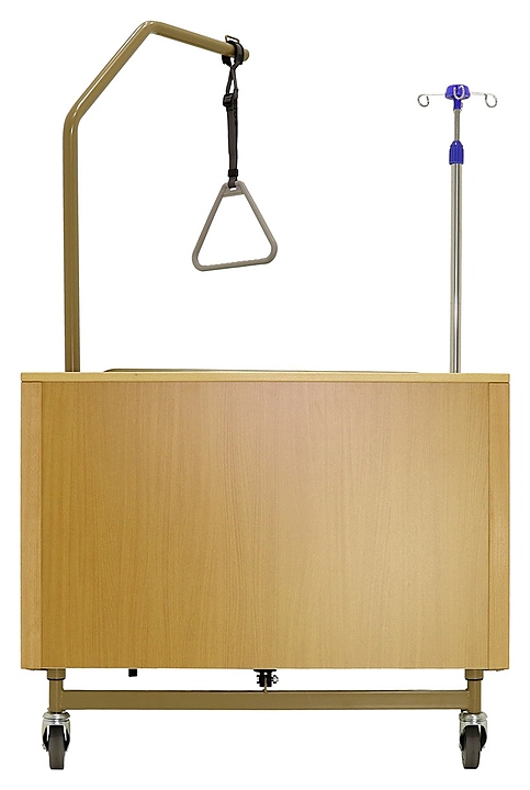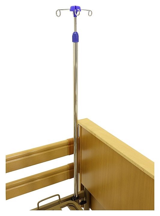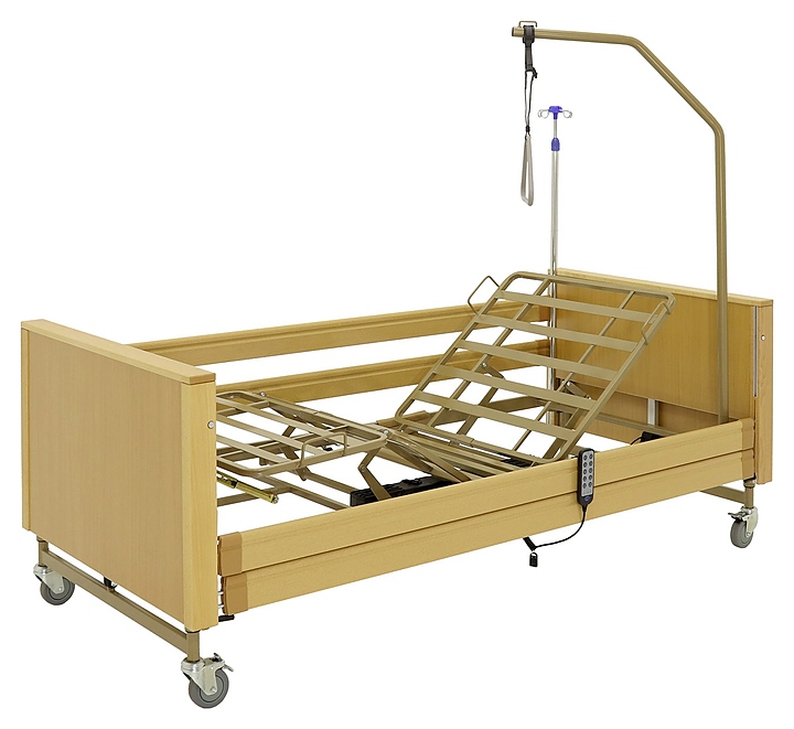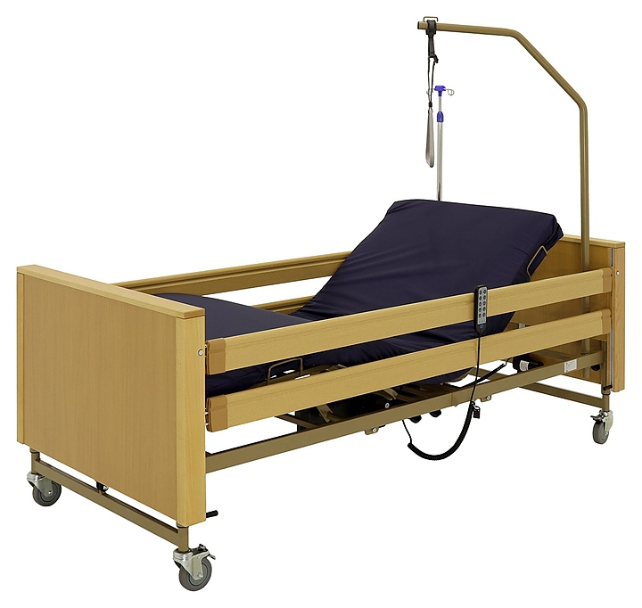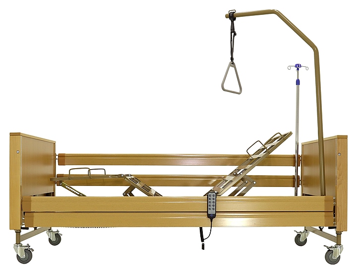 Медицинская кровать электрическая Med-Mos YG-1 (КЕ-4024М-21) с РУ используется в учреждениях здравоохранения для более комфортного пребывания в больнице лежачих больных с проблемами опорно-двигательного аппарата и пациентов, которые проходят процесс реабилитации после перенесенных операций или тяжелых заболеваний. Модель оснащена пластиковыми торцевыми элементами на боковых ограждениях, индикатором режима работы и индикатором заблокированного/разблокированного состояния на пульте управления пациента. Ложе и каркас выполнены из сварных конструкций из профильных труб из высокопрочной стали, покрытых ударопрочной эпоксидной эмалью, ограничители - из стального прутка, поперечины - из высокопрочных деревянных ламелей, торцевые спинки - из стального каркаса с облицовкой из массива бука, боковые ограждения - из алюминиевого профиля, покрытого декоративной пленкой под дерево, колеса - из полиуретана, дуга для подтягивания и инфузионная стойка - из нержавеющей стали с элементами из пластика. Кровать поставляется с регистрационным удостоверением Минздрава РФ. Комплектация: