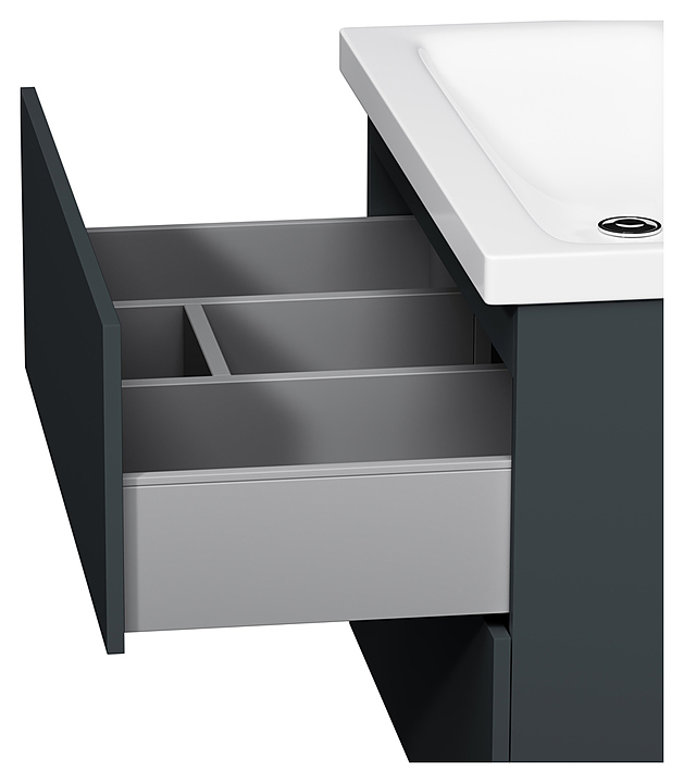 Тумба AM.PM Gem M90FHX07522GM используется вместе с раковинами Gem. Благодаря лаконичному дизайну подойдет любому интерьеру ванной комнаты. Модель оснащена 2 выдвижными ящиками с механизмом «плавное закрывание» для бесшумной работы. Корпус выполнен из ЛДСП и покрыт краской в 7 слоев, что обеспечивает насыщенный цвет, стойкость к небольшим механическим повреждениям и простоту ухода. Особенности: