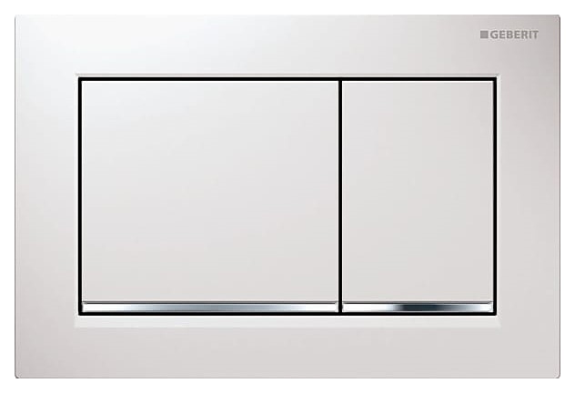 Кнопка смыва Geberit Omega30 115.080.KJ.1 предназначена для установки с инсталляциями для подвесных унитазов Geberit. Аксессуар прямоугольной формы с двойной клавишей, непосредственно приводящей в действие экономный механизм большого и малого смыва для рационального расхода воды. Модель выполнена из пластика. В комплект поставки входят монтажная рама, 2 толкателя привода смыва, 2 держателя крепления рамки и крепеж. Особенности: