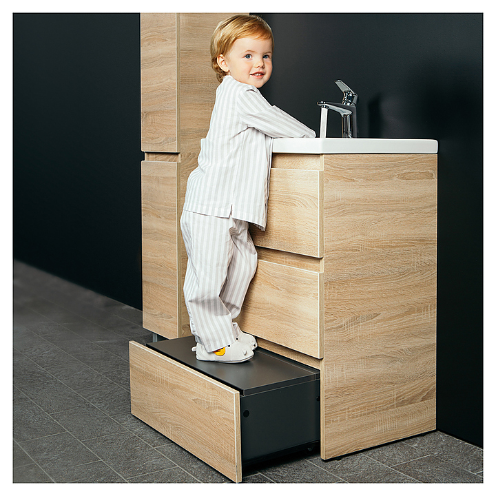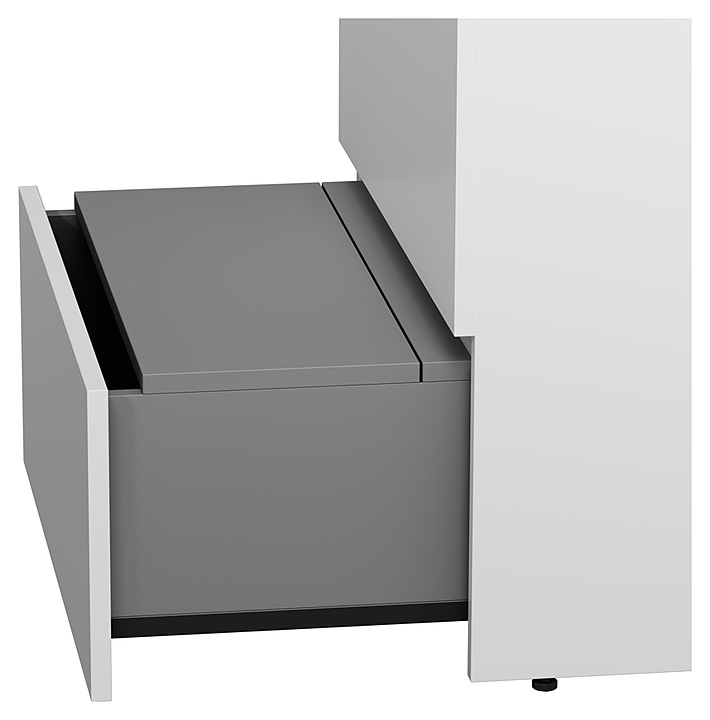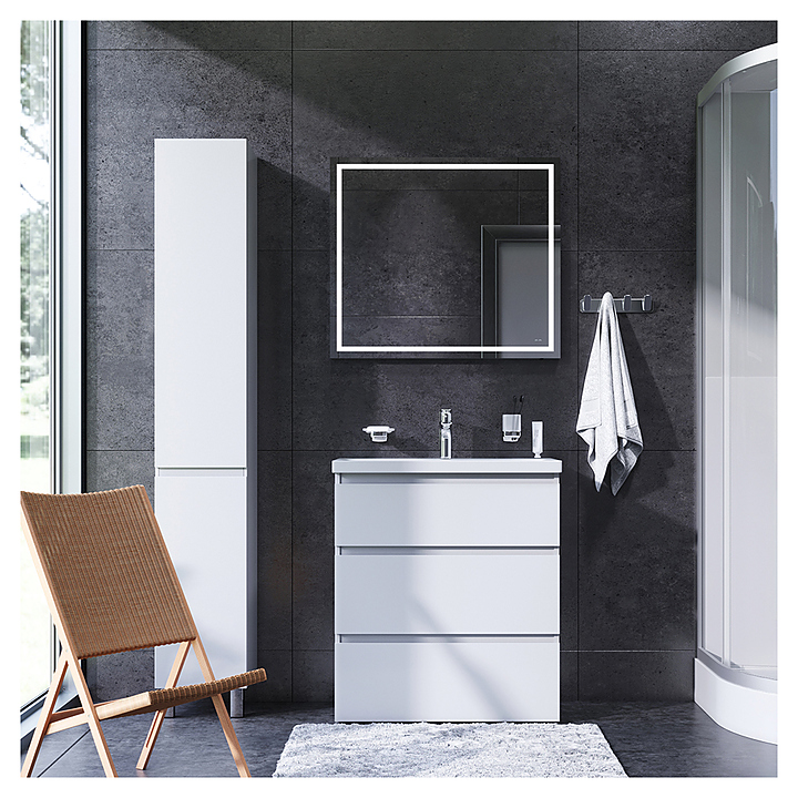 Тумба AM.PM Gem M91FSX0752WG используется вместе с раковинами Gem. Благодаря лаконичному дизайну подойдет любому интерьеру ванной комнаты. Модель оснащена 3 выдвижными ящиками с механизмом «плавное закрывание» для бесшумной работы и выдвижной подставкой для детей. Корпус выполнен из ЛДСП и покрыт краской в 7 слоев, что обеспечивает насыщенный цвет, стойкость к небольшим механическим повреждениям и простоту ухода. Особенности: