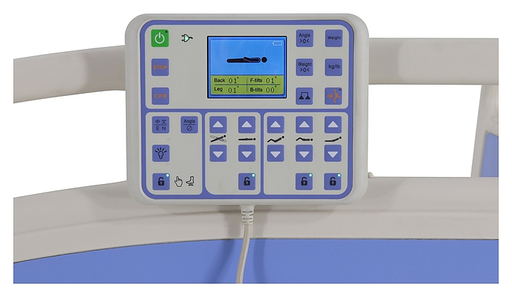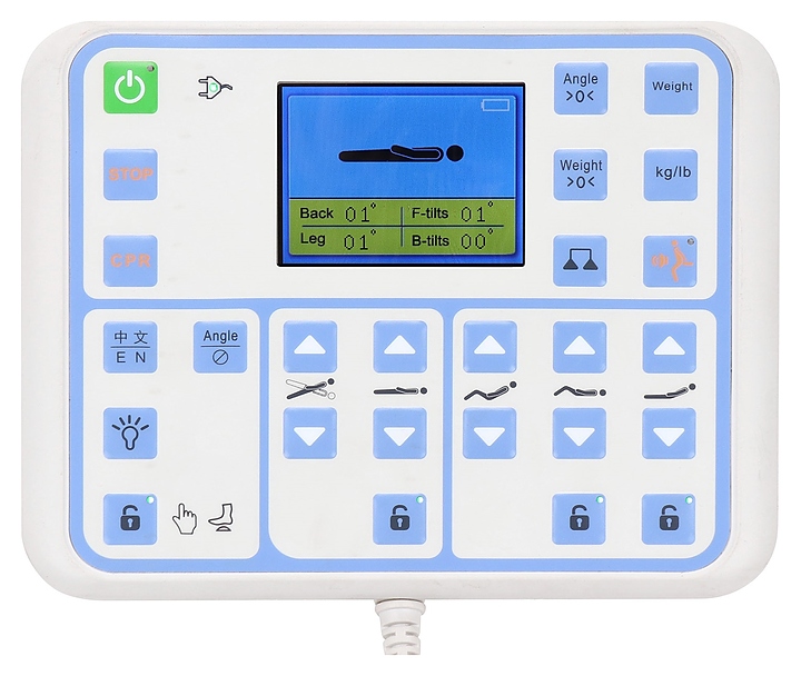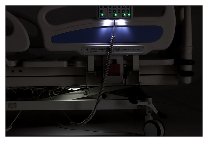 Пульт управления пациента с интуитивно понятным управлением и индикаторами режима работы, подключаемый к специальному разъему в основании кровати