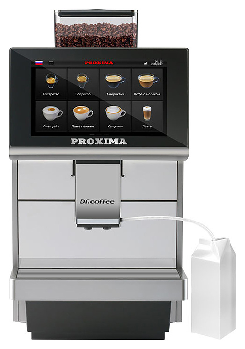 Кофемашина Dr.coffee Proxima M12 Plus используется на предприятиях общественного питания и торговли, в офисах, а также в домашних условиях для приготовления кофе и кофейных напитков. Модель оснащена графическим сенсорным дисплеем с блокировкой функции изменения параметров напитков для пользовательского меню. Жернова кофемолки выполнены из керамики, бойлер - из алюминия, контейнеры, каплесборник, заварное устройство - из пластика. В комплект поставки входят молочная трубка, кабель, трубка для подачи воды, гаечный ключ для настройки степени помола. Особенности: