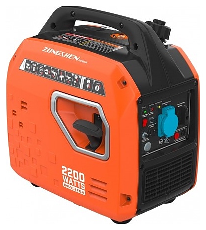 Генератор бензиновый Zongshen BQH 2200 E туристический, предназначен для резервного электроснабжения в местах с постоянным или временным отключением электрической энергии, максимальной мощностью до 2,1 кВт. Модель оснащена электростартером, инверторным преобразователем, что дает возможность прямого подключения компьютеров, планшетов, смартфонов и другой чувствительной техники к качеству электрического тока. Корпус закрытого типа, что исключает появление механических повреждений и удобен в транспортировке. Особенности: