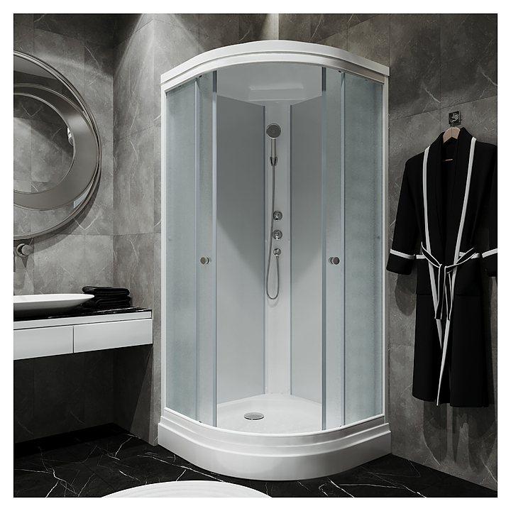 Душевая кабина Triton Вельвет 90х90 А предназначена для использования в ванных комнатах. Благодаря угловой конструкции и поддону в форме четверти круга модель можно вписать даже в ванные комнаты небольшой площади. Кабина оснащена регулирумыми по высоте ножками, 2-х секционными раздвижными дверцами и крышей. Поддон выполнен из акрила, устойчивого к механическим повреждениям и обладающего небольшим весом и повышенной шумоизоляцией. Комплектация:
