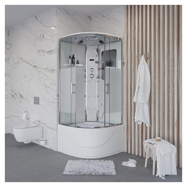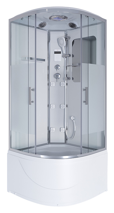 Душевая кабина Niagara Ultra NG-308-01 предназначена для использования в ванных комнатах. Благодаря изящной форме и изысканному дизайну кабина станет украшением ванной комнаты, а угловая конструкция в форме четверти круга легко впишется на небольшой площади. Душевая кабина оснащена 2х секционными раздвижными дверями, крышей, верхнем душем, пультом управления с радио, гидромассажем, зеркалом и полочкой. Профиль изготовлен из анодированного алюминия в хроме, двери из закаленного прозрачного стекла с матовой линией, задняя стенка и центральная панель - из белого закаленного стекла. Комплектация: