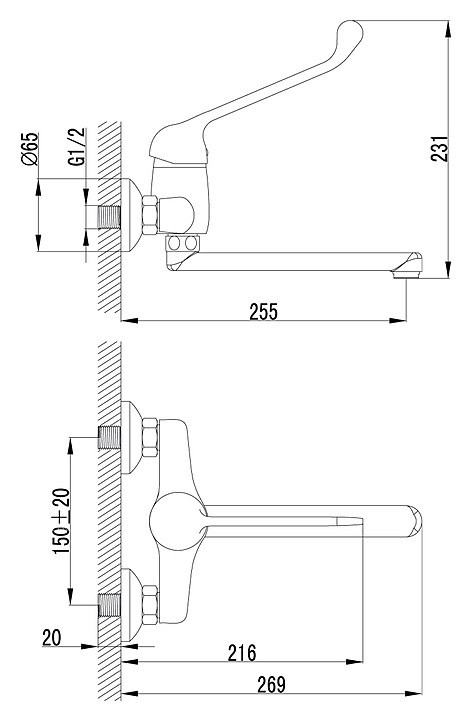 Смеситель для кухни LEMARK Project LM4611C с локтевой рукояткой, настенный, хром