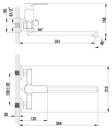 Смеситель для ванны и душа LEMARK plus Grace LM1551C универсальный, с плоским изливом, хром
