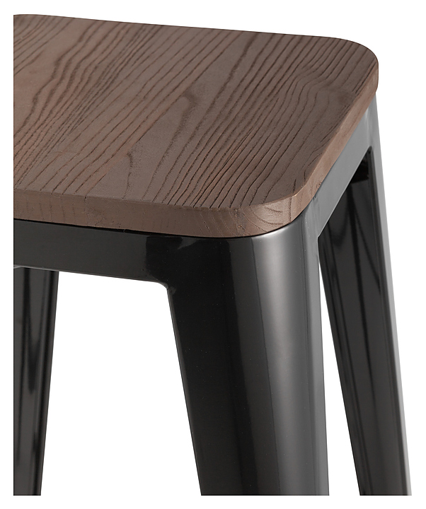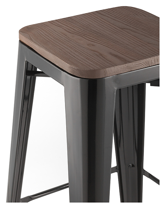 Барный стул Stool Group TOLIX WOOD черный глянцевый предназначен для обустройства обеденных групп в кухнях, столовых, гостиных, а также в кафе и ресторанах. Модель оснащена жёстким сиденьем и жесткой спинкой. Каркас изготовлен из стали, сиденье из тёмного дерева. Особенности: