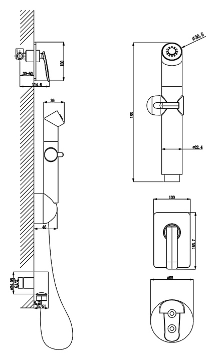 Смеситель для биде с гигиеническим душем LEMARK Bellario LM6819C встраиваемый, хром