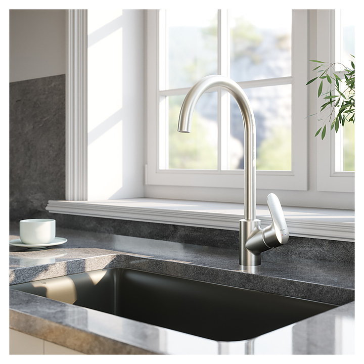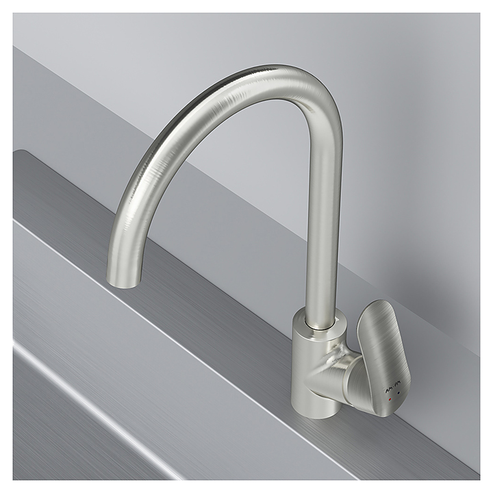 Смеситель для кухни AM.PM Like F8007111 предназначен для установки на кухонную мойку и оснащен более длинным изливом для того, чтобы быть направленным ближе к центру мойки для удобства использования. Коллекция Like отличается мягкими, обтекаемыми формами, а все отдельные элементы изделий идеально сбалансированы и отлично подчеркивают единую концепцию дизайна. Модель оснащена удобной ручкой, высоким, поворотным изливом и керамическим картриджем. Изделие выполнено из высококачественной латуни, которая отличается прочностью, долговечностью и устойчивостью к перепадам температур. Особенности: